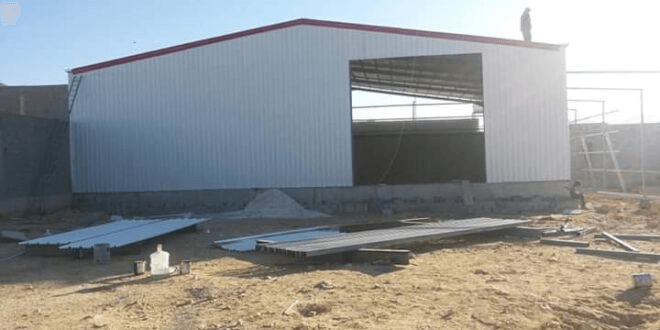 - تثبيت الألواح المعدنية والجدران الخارجية لضمان حماية الهناجر من العوامل الجوية والأضرار المحتملة.